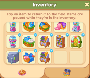 When your game board is full, you can free up space by moving items to the Inventory. Drag the desired item to the Backpack icon on the right side of the screen. Once moved, the item will disappear from the board, freeing up one slot. To return an item to the board, open the Inventory, click the desired item, and it will reappear on the game board.